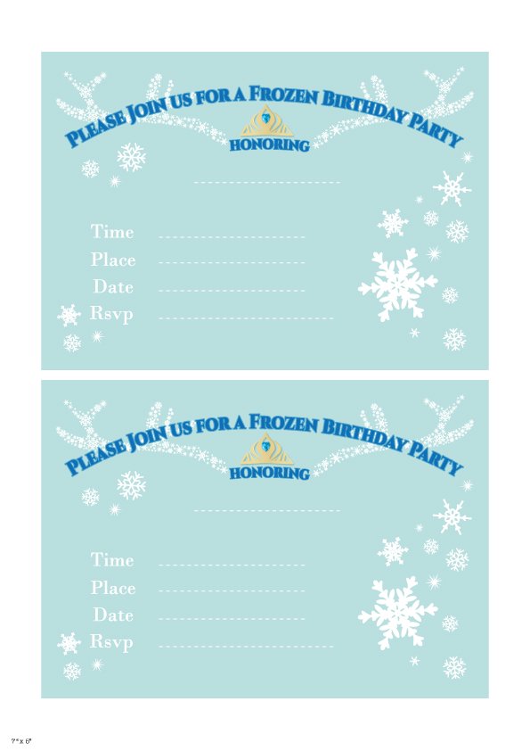 Here is a blank invitation that we gave designed especially for the Frozen them. This invitation is part of set and you can find it on my Etsy Shop Plus don't forget to use Coupon for special customers like you and get 25% off your order.