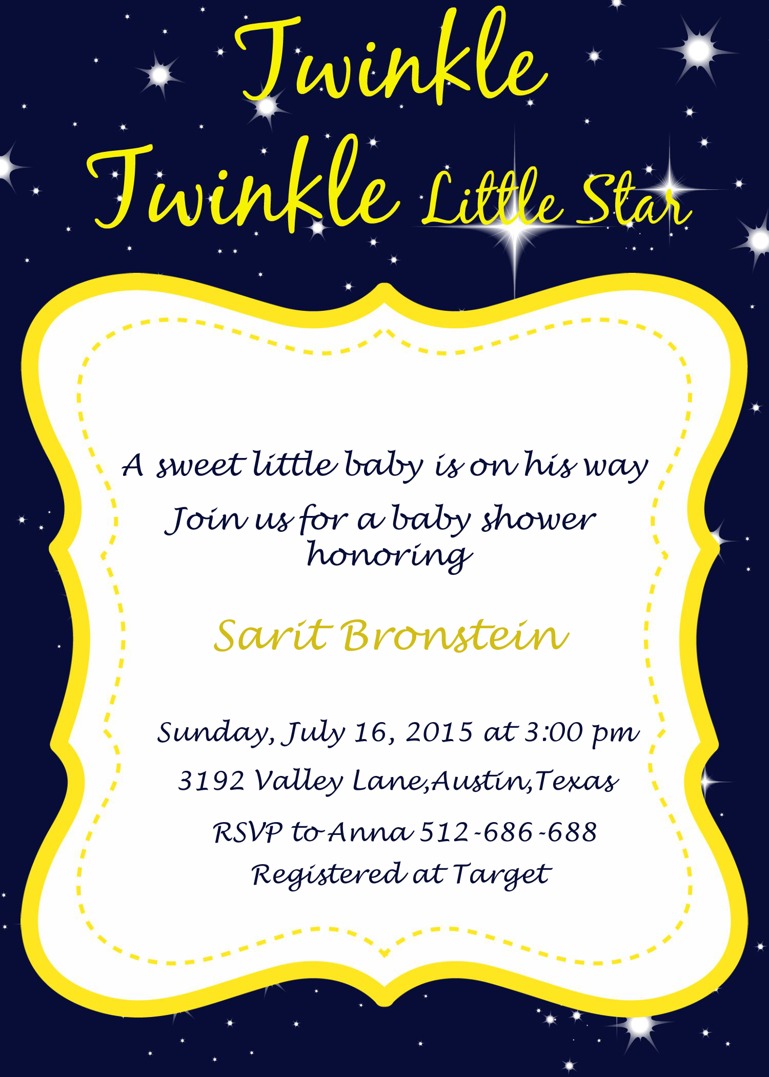 Here is an example of a Twinkle Twinkle Baby Shower Invitation that you can find on our Etsy Shop.